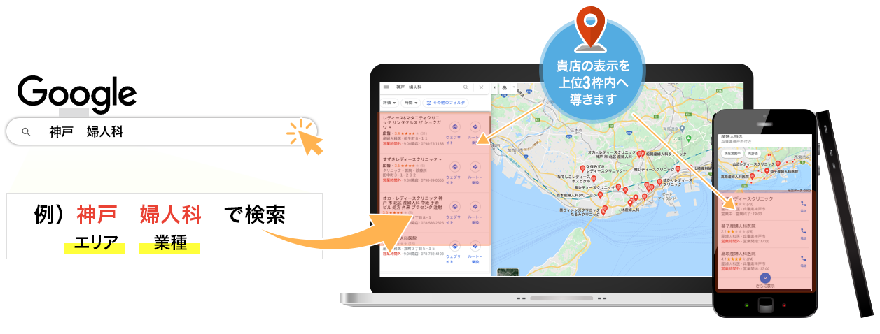 そのときに、地図の上位に表示されるか、否かで集客へ大きく影響を与え、